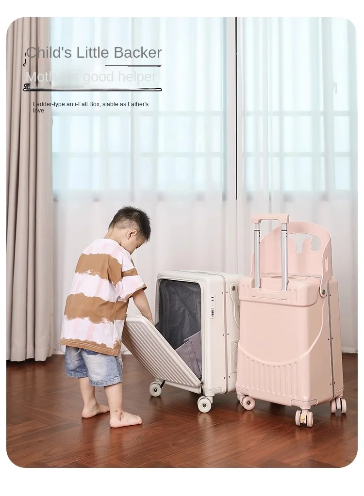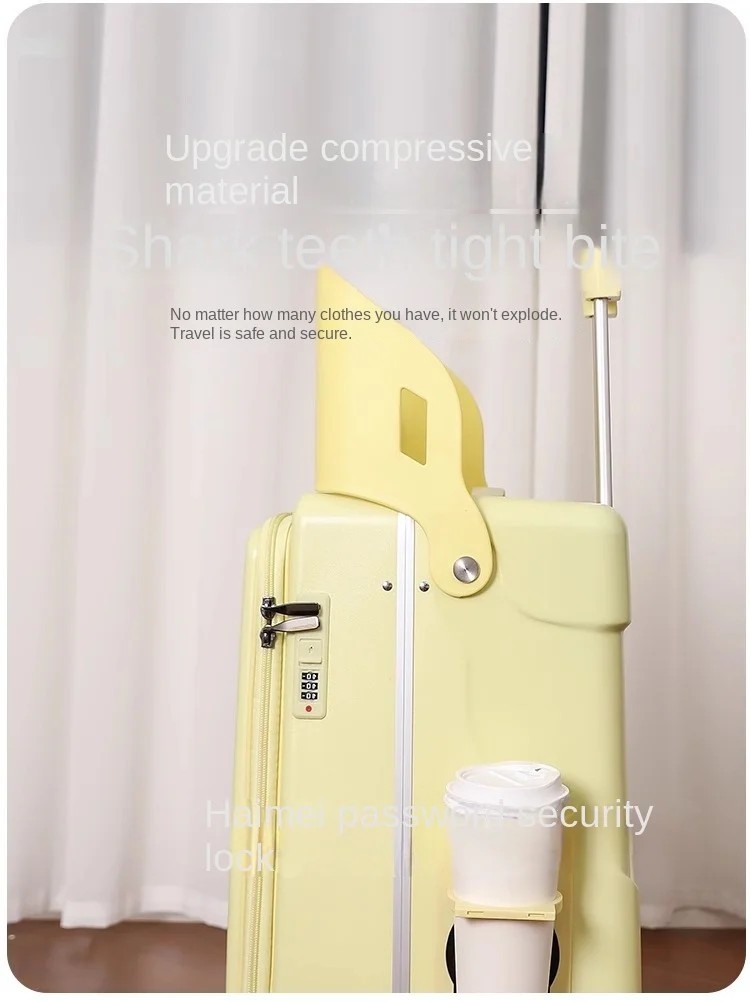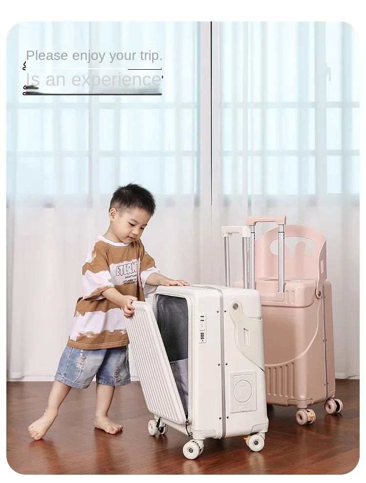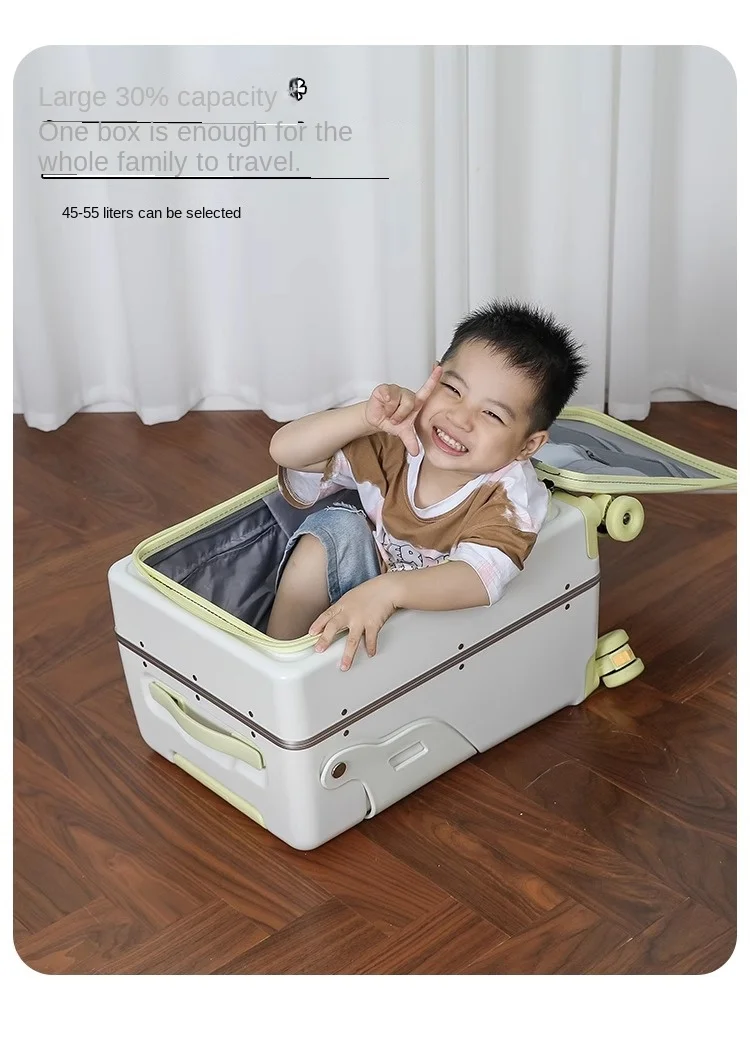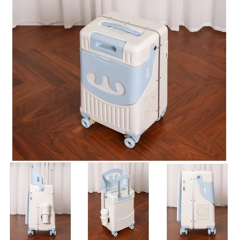 2025 New suitcase for children can Sit 20/22 inch Ride on Luggage Front Opening Sturdy Thickened Travel suitcase with Cup Holder
